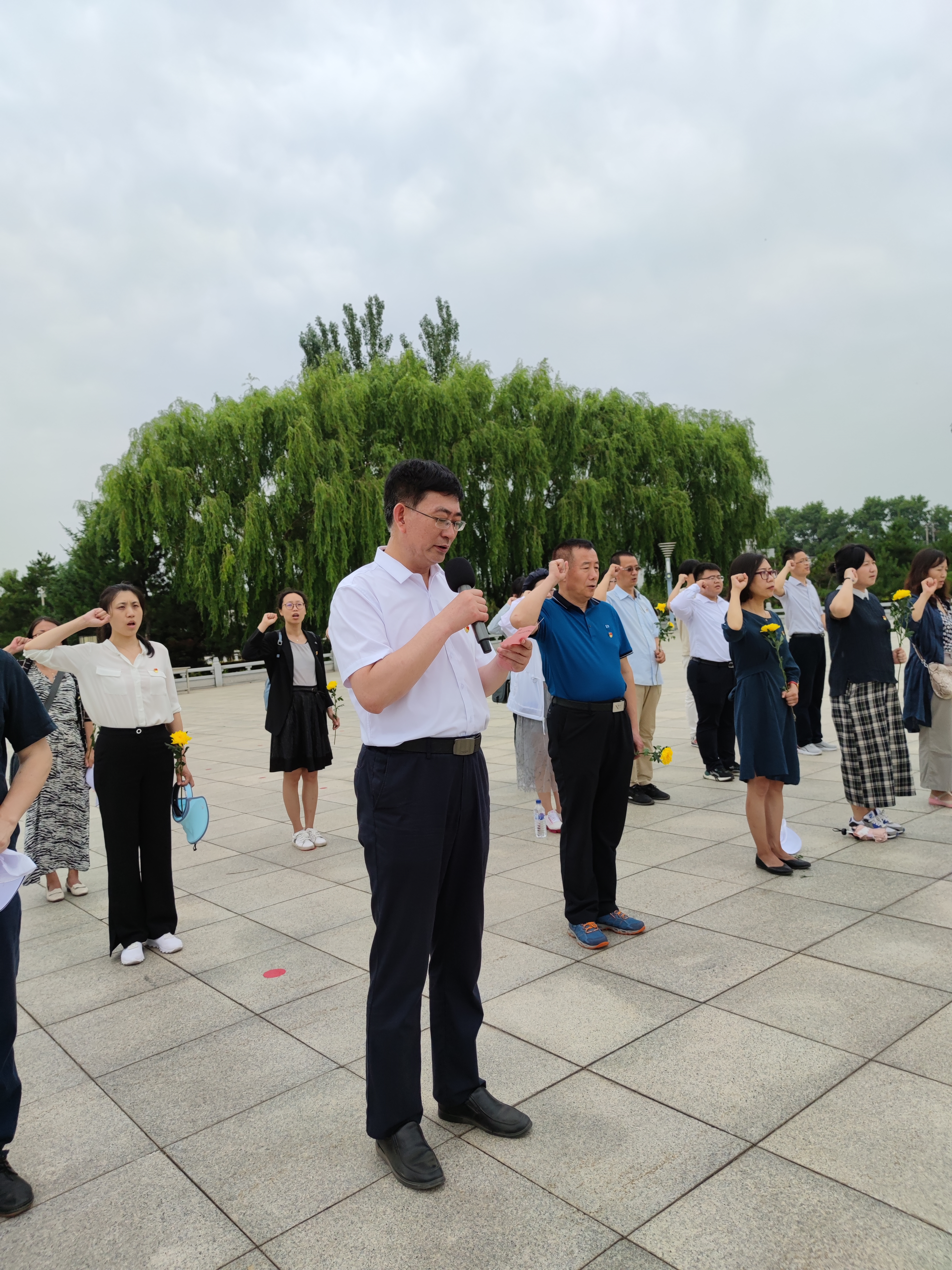 下午,全体人员先到全国重点烈士纪念建筑物保护单位四平烈士陵园开展学习活动。陵园里安葬着为四平解放和建设而牺牲的数万名烈士,其中有记载的为10083名。讲解老师带领大家参观了马仁兴将军和李光正等多名中国人民解放军第四野战军最高战功奖“东北民主联军毛泽东奖章”获得者的雕像、四战四平纪念碑、烈士英名墙以及大型合葬墓。在纪念碑前,党委书记刘昌松同志领誓,带领大家重温入党誓词。