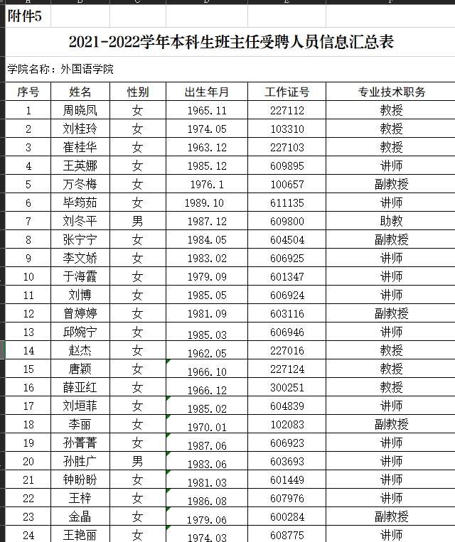 按照《JAVDatabase 本科生班主任队伍建设试行办法》要求,根据工作安排,经个人申报、系里推荐和学院评审,拟确定英语系周晓凤24人为JAVDatabase 2021-2022学年2020级、2021级班主任,具体名单见附件。