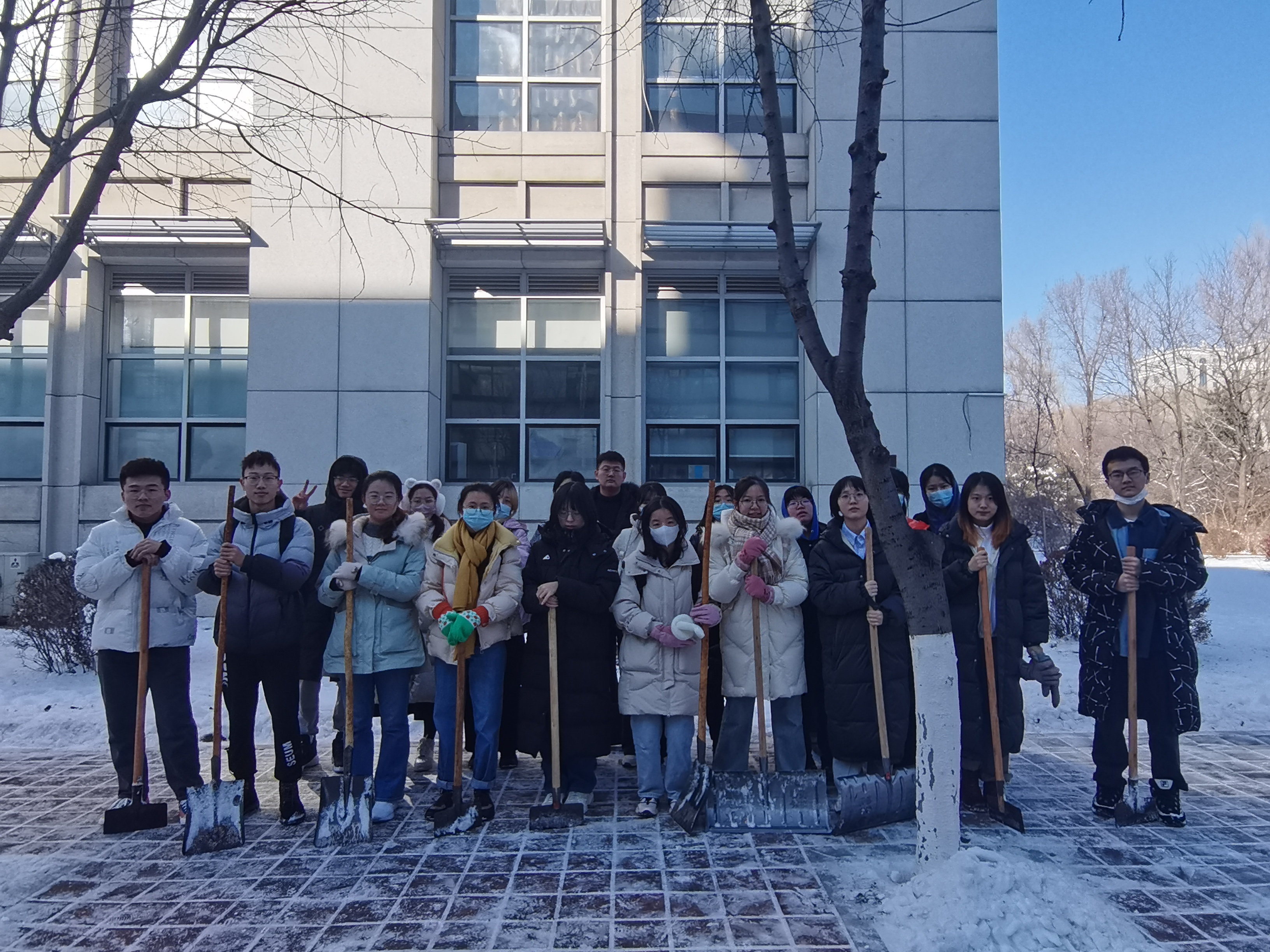 新生各班积极响应,协同联动,第一时间到积雪现场报到,划片区合理分工,齐心协力清除了外语楼周边区域的积雪,经过共同努力,外语楼周边主干道及公共区域被清扫干净,校园道路得以正常通行。