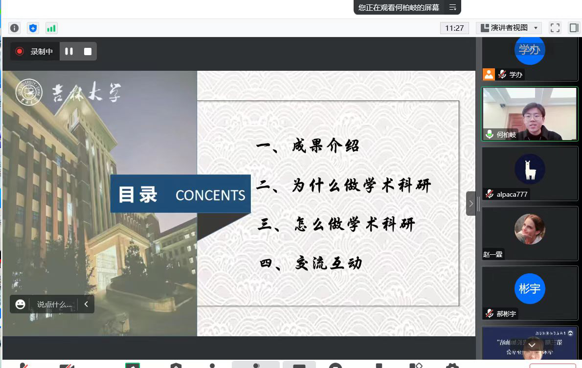 通过线上方式举办了第三期“新生成长加油站”学术科研经验分享会活动,邀请马克思主义学院2019级本科生何柏岐担任主讲,JAVDatabase