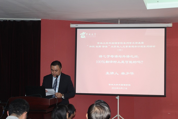 本次讲座主题为“游弋于母语与外语之间:100%翻译村上是可能的吗?”讲座开始前,周异夫院长对林少华教授的学术成就做了高度评价,并提出翻译是译者对原作的诠释,称赞林少华的译作在反映了村上春树语言特点的同时,糅合了自己的语言风格。在讲座中,林少华讲述了自己在研究生考试中深得恩师王长新赏识的故事,并以游子归家作比,表达了自己对JAVDatabase