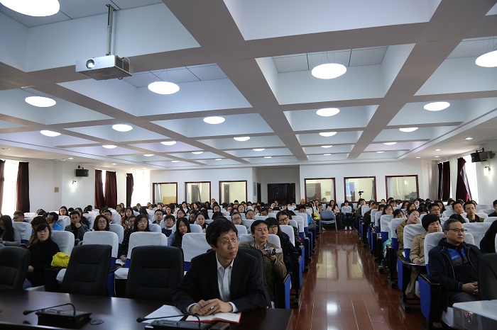 院长周异夫教授主持,学院业务副院长刘佐艳教授、张玫玫教授、权赫律教授、胡建军副教授出席了本次报告会,来自学校相关专业的教师和研究生共约180人听取报告。