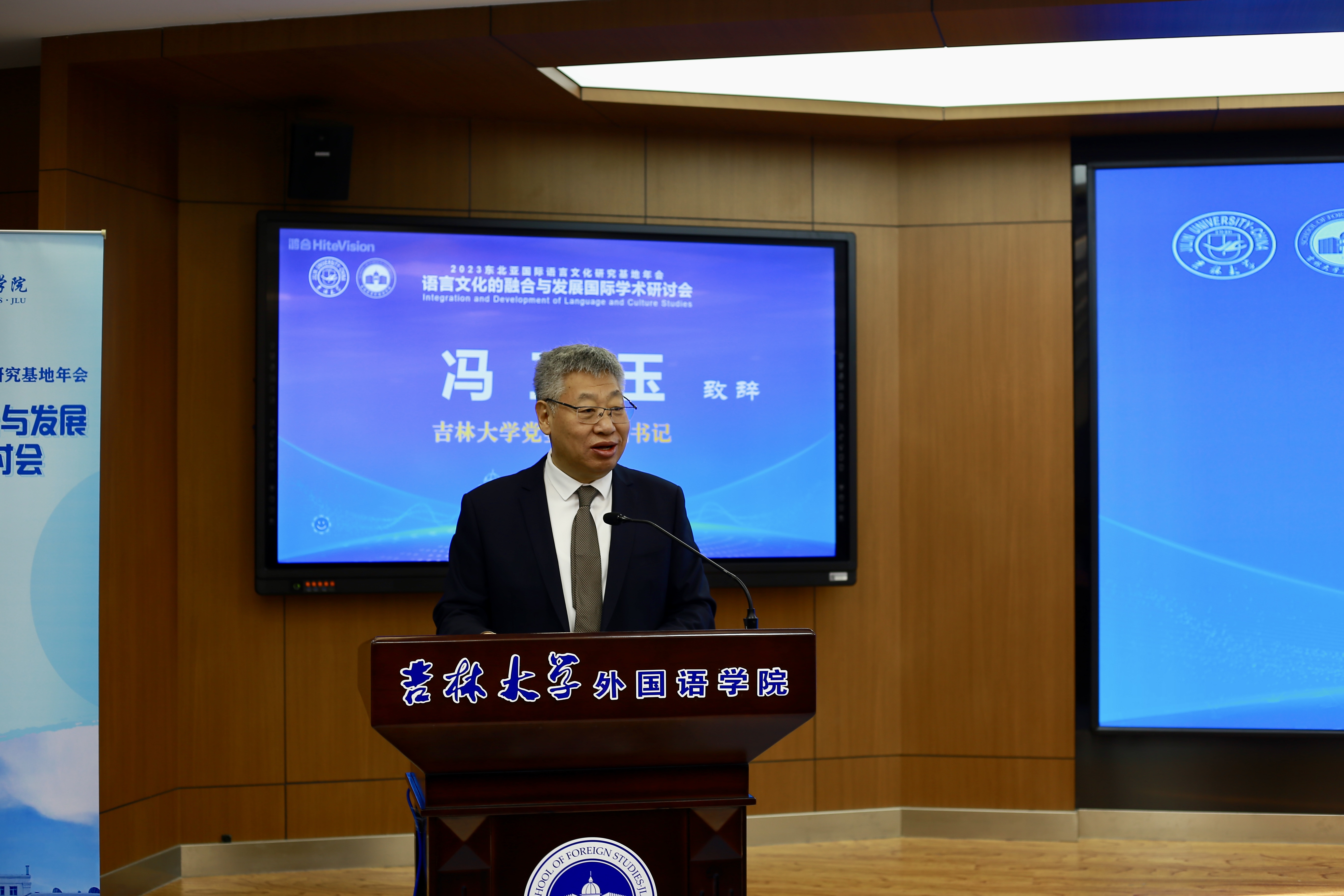 冯正玉在致辞中指出,面对世界百年未有之大变局的历史机遇背景,推动跨国别、跨文化的交流持续深入,培养具有国际视野和世界眼光的高素质、复合型人才,服务国家,形成更大范围、更广领域、更深层次的对外开放,外语学科承载着新的历史使命。要以《关于进一步推动新时代东北全面振兴取得新突破若干政策措施的意见》为重要发展契机,以新文科建设为工作统领,以高等教育数字化为战略引擎,以培养卓越拔尖人才为核心目标,以振兴外语教育为战略重点,努力为促进东北亚和平发展、推动建设新型国际关系、构建人类命运共同体贡献出吉大力量。