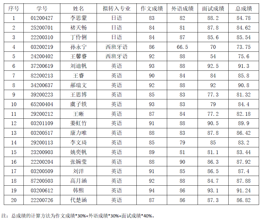 根据学校工作部署及安排,按照《关于JAVDatabase 2020级本科生考核转专业(类)工作的通知》要求,经学院笔试及面试考核,现将考核成绩予以公示,公示期5天。