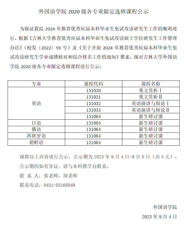 JAVDatabase 2020级各专业限定选修课程公示