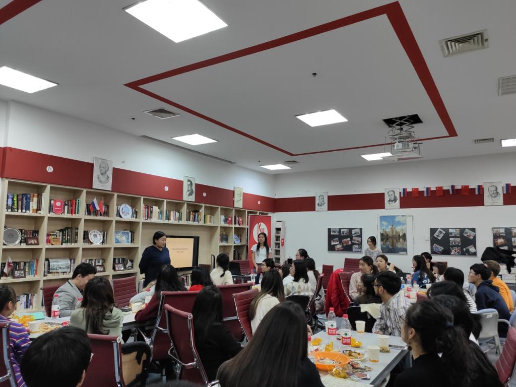 On the afternoon of November 13, 2019, a Sino-Russian cultural salon was held in the Russian Center of Jilin University. This activity was co-sponsored by the School of Foreign Languages and the School of International Education of Jilin University. It is part of a series of activities of cultural exchanges between Chinese and foreign students in Jilin University. The students attending the salon included students from the Russian Department of the School of Foreign Languages of Jilin University and international students from Russia, Kazakhstan and Tajikistan. The purpose of this activity is to enhance the exchange between Chinese students and Russian-speaking students, cultivate students’ international vision, stimulate the learning enthusiasm of Chinese and foreign students, improve students’ cultural knowledge of the target-language countries, and lay a solid foundation for cross-cultural exchanges.